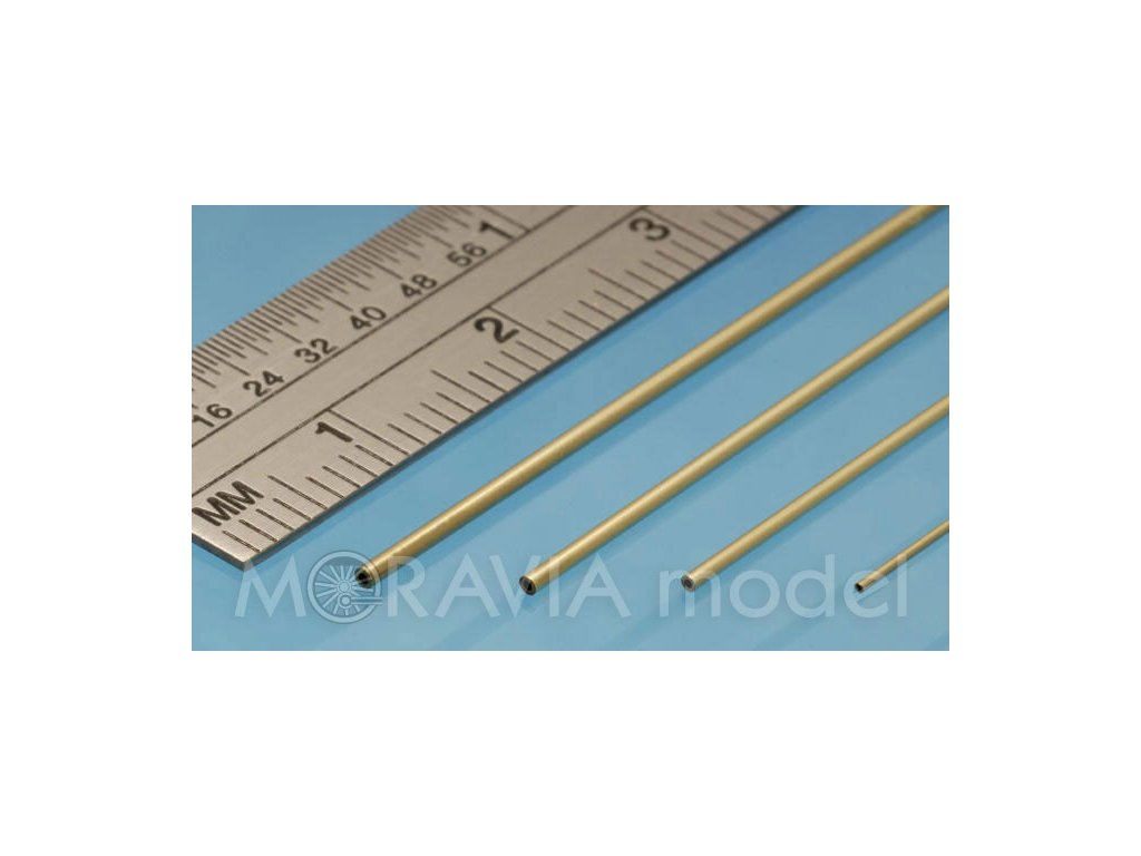 Mosazná trubka průměr 1,2 mm, vniitřní průměr 0,6 mm, délka 305 mm, 3 ks.