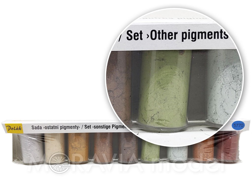 Práškové pigmenty je možné použít k patinování krajinných částí, vagonů a lokomotiv a to, jak suchým procesem, tak i s použitím vhodného pojiva. Dále je možné je použít k dobarvení modelovací hmoty a k probarvení imitace vody - prášek je vhodný do všech typů ( Epoxid, PES, PU, na bázi vody či nahřívací).