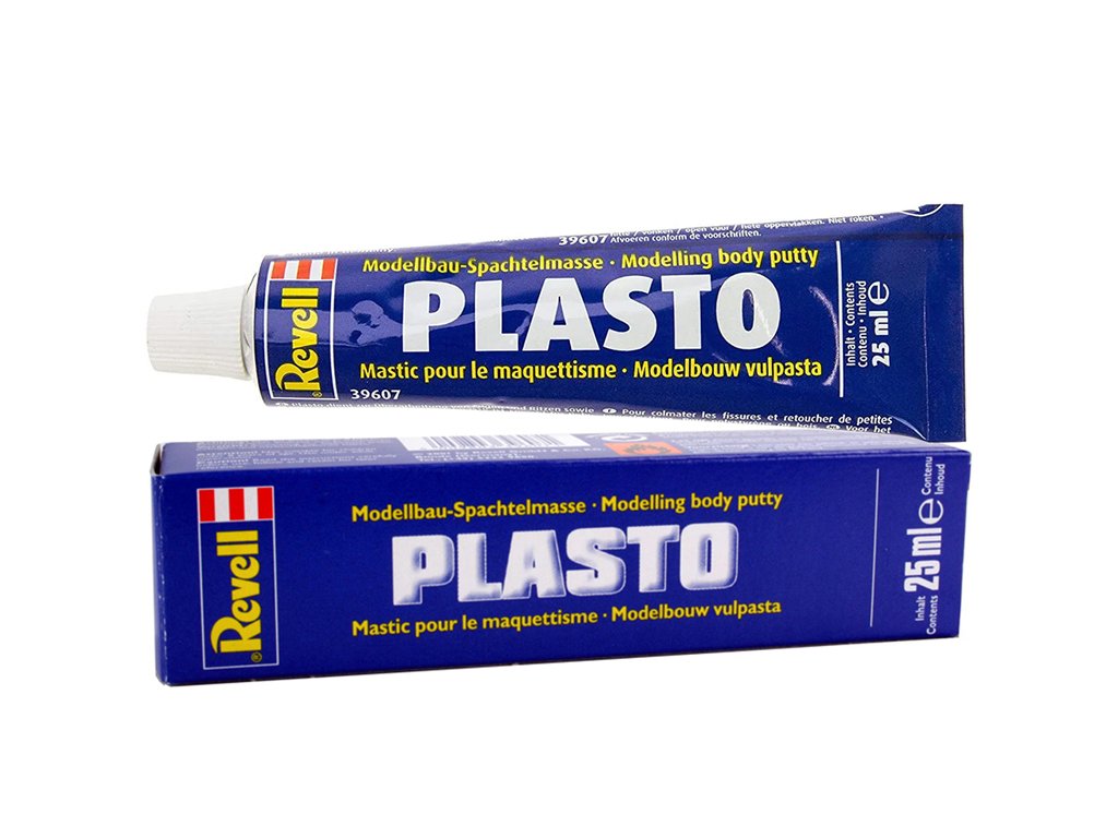 Tmel Revell (kat.č. 39607) (Plasto Body Putty) Základní Revell tmel na plastikové modely. Balení v tubě, hmotnost 25 ml. Rozpoušťědlový tmel na plastikové modely od firmy Revell, je vhodný pro tmelení menších nerovností a spár.